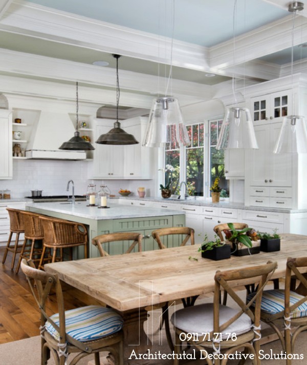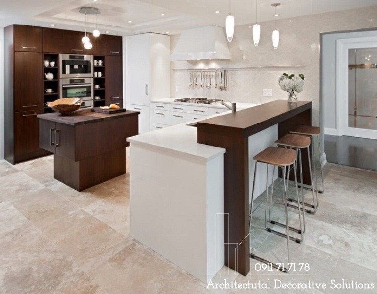 Thiết kế này kết hợp không gian ngồi trong phòng bếp với một bàn ăn ngay ngoài bếp giúp tăng diện tích chỗ ngồi hơn.