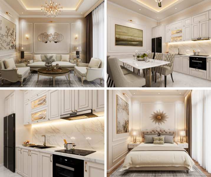 Neo Classic có tên Việt Nam là Phong cách tân cổ điển, phong cách tân cổ điển được thiết kế nhấn mạnh chủ yếu vào các bức tường, trần, mọi nội thất đều được duy trì đối xứng theo tỷ lệ hài hòa nhất định. Phong cách này được ưa chuộng vì nó mang đến sang trọng, tinh tế, ngoài ra còn thể hiên được khí chất của gia chủ.