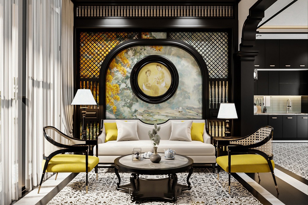 Phong cách Đông Dương (Indochine) là bản giao hưởng hài hòa, ấn tượng giữa văn hóa phương Đông và phương Tây. Phong cách Đông Dương chủ yếu là sử dụng những gam màu trầm ấm như vàng đậm, vàng, cam, màu tím,... tạo cảm giác mát mẻ, phù hợp với nền khí hậu của Việt Nam.
