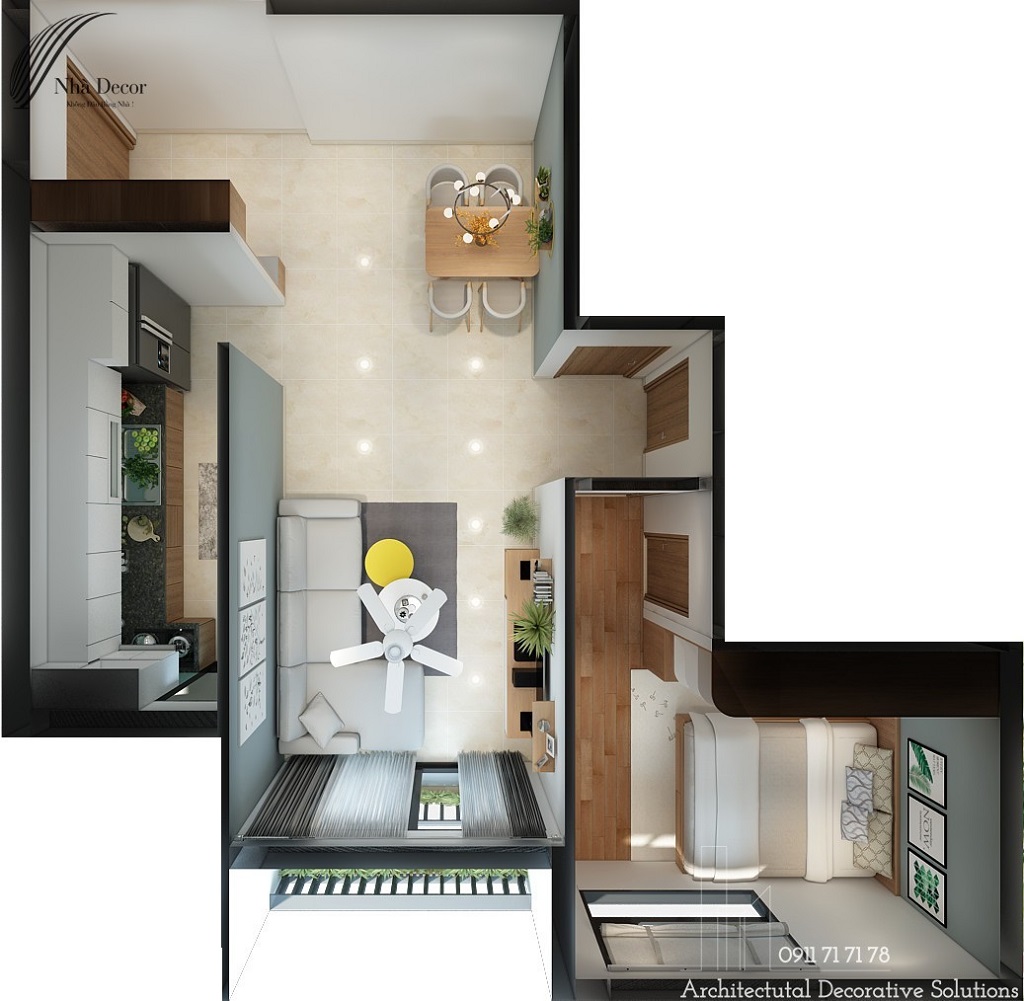 Hãy cùng DecoViet tham khảo mẫu Thiết kế nội thất căn hộ 1 phòng ngủ Phú Đông Premier dưới đây nhé!