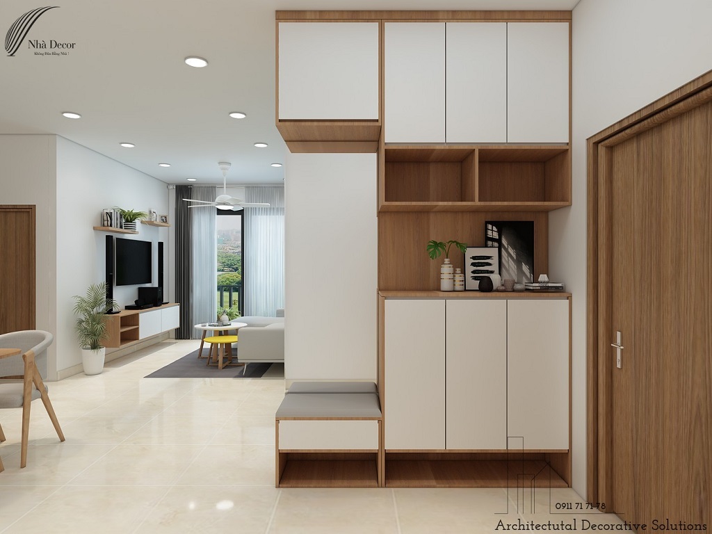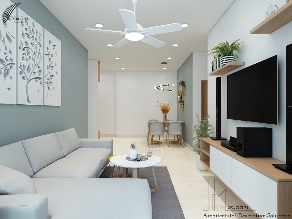 Dưới bàn tay tài nghệ của các KTS Nhà Decor đã biến căn hộ Phú Đông Premier trở nên ấm áp và hiện đại với gam màu nhẹ nhàng làm tăng thêm vẻ đẹp cho phòng khách