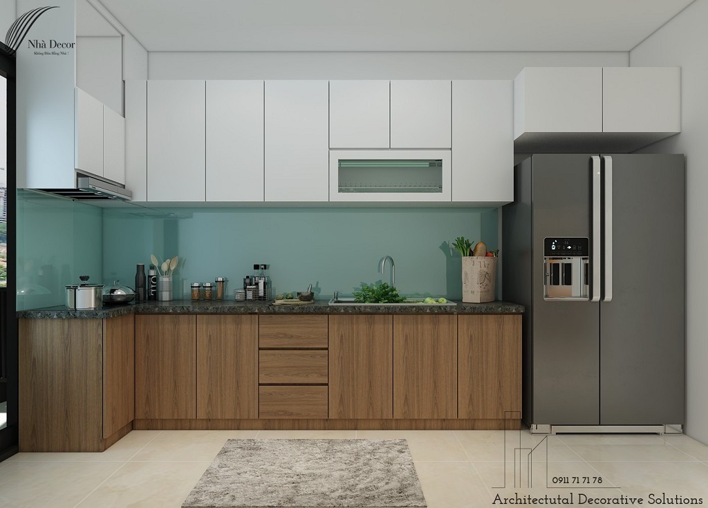 Thiết kế tủ bếp L giúp tối ưu hóa diện tích của căn nhà. Tủ bếp L được trang bị với đầy đủ công năng, với nhiều hộc tủ lớn nhỏ để gia chủ lưu trữ đồ dùng nhiều hơn. Thiết bị thông minh và phụ kiện bếp thông minh tạo sự thuận tiện cho người nội trợ dễ dàng trong nấu nướng hơn.