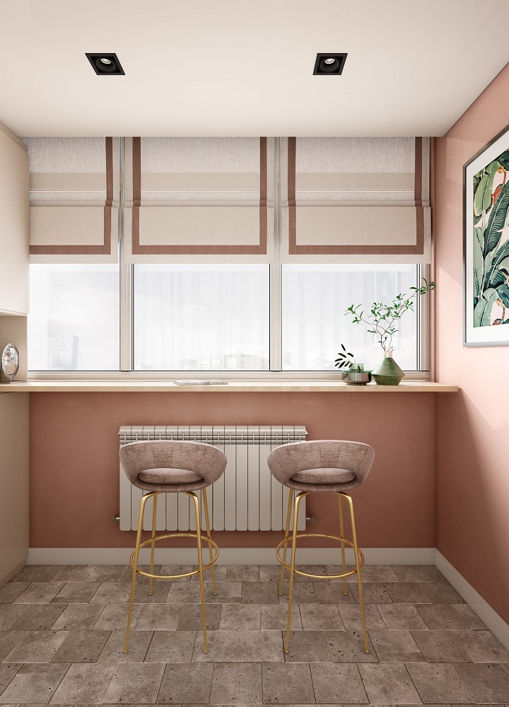 Cả khu vực tiếp khách và phòng bếp đều có cửa sổ mang lại ánh sáng tự nhiên và sự thông thoáng cho căn hộ 40m2