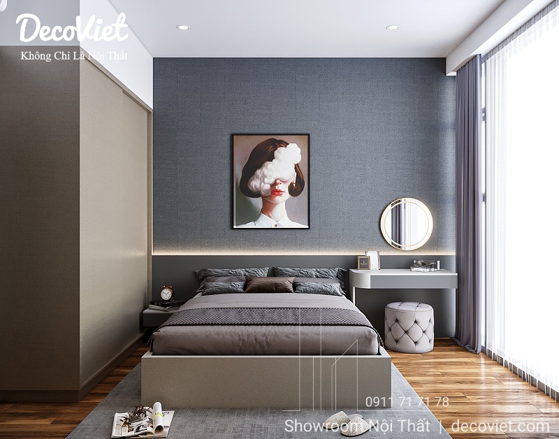 Phòng ngủ là không gian sinh hoạt riêng của từng cá nhân trong gia đình. Vì vậy, khi thiết kế nội thất phòng ngủ, DecoViet luôn dựa trên sở thích và tính cách của chủ nhân căn phòng. Thiết kế phòng ngủ căn hộ Empire City có phần thiên về sự tối giản và nhẹ nhàng, để tăng cảm giác thư giãn và thả lỏng cho gia chủ.