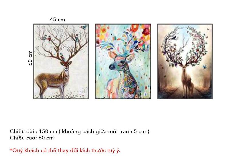 Kích thước: Chiều dài 150cm, chiều cao 60cm (Khoảng cách giữa các tranh 5cm).