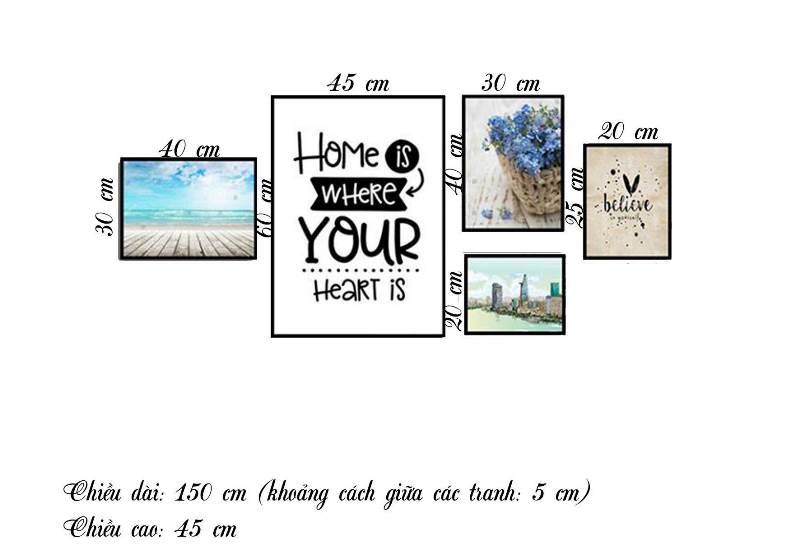 Kích thước: Chiều dài 140cm, chiều cao 45cm (Khoảng cách giữa các tranh 5cm).