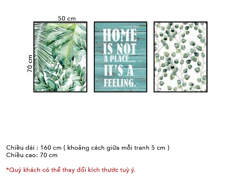 Kích thước: Chiều dài 160cm, chiều cao 70cm (Khoảng cách giữa các tranh 5cm).