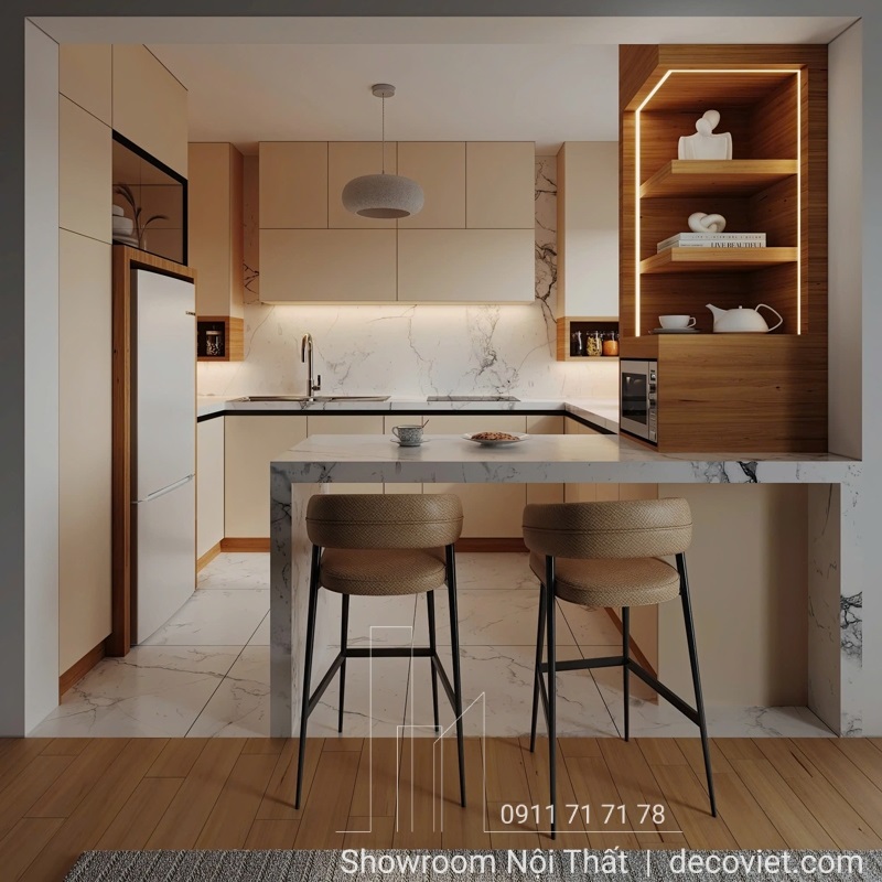 Tủ bếp hiện đại – thiết kế tối ưu hóa công năng, phù hợp với không gian nhỏ.
