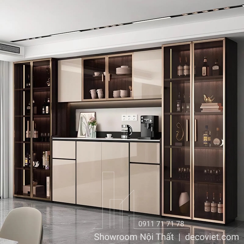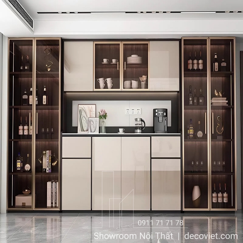 Tủ rượu cao cấp không chỉ để cất giữ những chai rượu quý, mà còn góp phần hoàn thiện vẻ đẹp tổng thể của ngôi nhà. Thiết kế Tủ Đựng Rượu Hiện Đại 2013T với sự kết hợp giữa chất liệu gỗ công nghiệp bền bỉ, cánh kính sang trọng và hệ thống đèn LED tinh tế, tạo nên một góc trưng bày thu nhỏ đầy nghệ thuật. Không phô trương, không cầu kỳ, nhưng một chiếc tủ rượu đẹp sẽ đủ để bất kỳ ai cũng phải dừng lại ngắm nhìn. Với thiết kế tủ rượu gỗ đẹp đẳng cấp từ DecoViet, đó không chỉ là một món nội thất, mà còn là sự kết hợp hoàn hảo giữa công năng, thẩm mỹ và phong cách sống của gia chủ.
