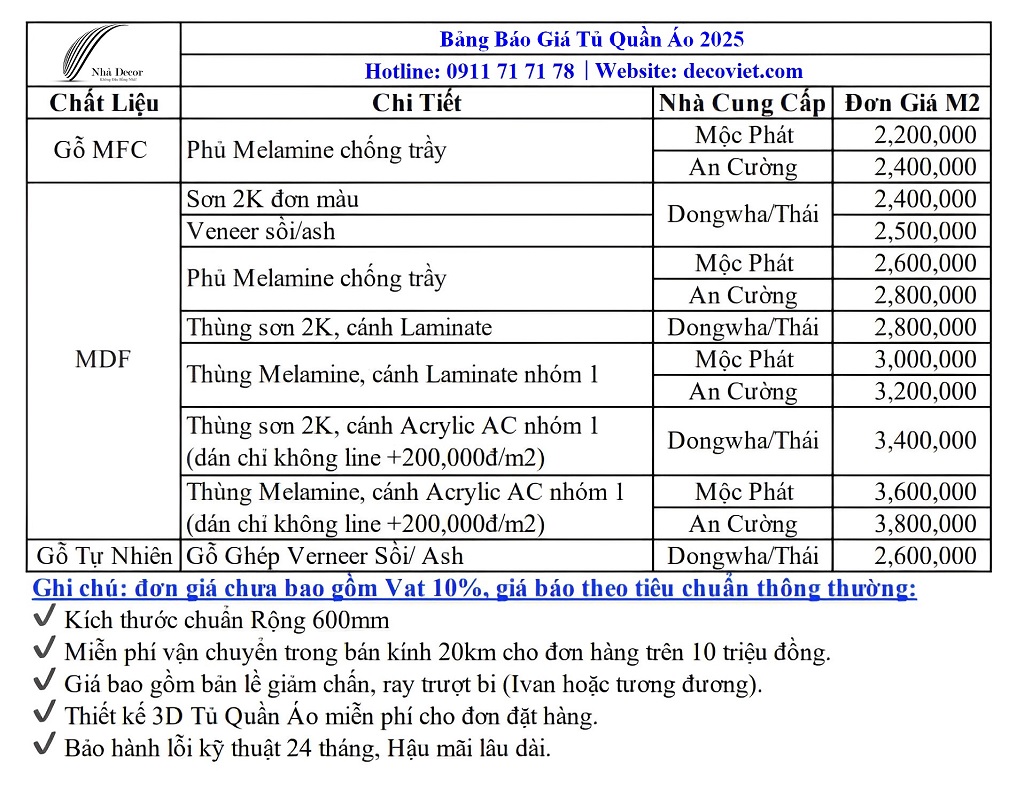 Tủ quần áo đóng vai trò quan trọng trong việc tổ chức không gian sống gọn gàng, ngăn nắp và tiện nghi. Tủ quần áo hiện đại không chỉ giúp bảo vệ áo quần khỏi bụi bẩn, ánh sáng mà còn tạo ra một không gian sắp xếp hợp lý, để bạn dễ dàng tìm kiếm và sử dụng. Bên cạnh đó, tủ đựng quần áo còn là món đồ trang trí nội thất, góp phần tạo nên vẻ đẹp hài hòa và sang trọng cho phòng ngủ của gia đình. Với nhu cầu ngày càng cao về chất lượng và thẩm mỹ, Nội thất DecoViet tự hào là đơn vị thi công Tủ Quần Áo Đà Lạt, tủ áo gỗ công nghiệp chất lượng, uy tín hàng đầu.